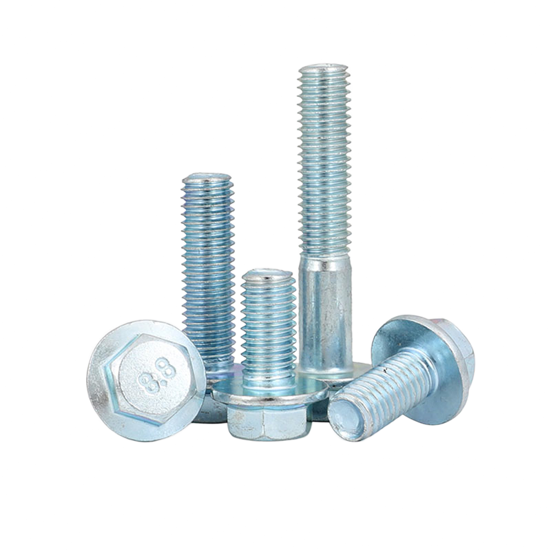 Valge tsingitud osaliselt keermestatud DIN 6921 kuuskantäärikpoldid on kuuskantpeaga kinnitusdetailid integreeritud äärikuseibi ja lühema keermega. Äärik jaotab kinnitusjõu ühtlaselt, hoides ära tooriku kahjustumise ja takistades lahtiminekut vibreerivas keskkonnas. Süsinikterasest (klass 4.8–12.9) või legeerterasest valmistatud valge tsinkkate tagab kulutõhusa korrosioonikindluse kuivades või kergelt niisketes tingimustes. DIN 6921 standardi kohaselt sobib osaline keere (lühem keere, pikem keermestamata vars) selliste rakenduste jaoks nagu autode alusraamid (kus keermestamata varred neelavad lööke) ja raskete masinate kinnitused (kus keermed haakuvad ainult vajaliku pikkusega). Suurused jäävad vahemikku M5–M30 ja neid kasutatakse autotööstuses (šassiid, mootoriruumid), ehituses (seadmete rigging) ja põllumajanduses (põllumajandusmasinad) turvaliseks ja vibratsioonikindlaks kinnituseks.